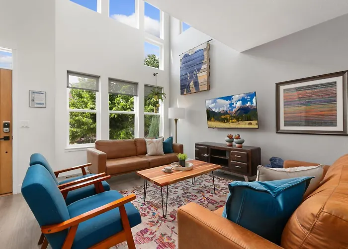 Deze 4-slaapkamer The Cycle Haus Rooftop Deck With Hot Tub And Views Fort Collins ligt binnen een korte wandeling van 25 minuten van The Farm at Lee Martinez Park en biedt toegang tot verschillende attracties in de omgeving.